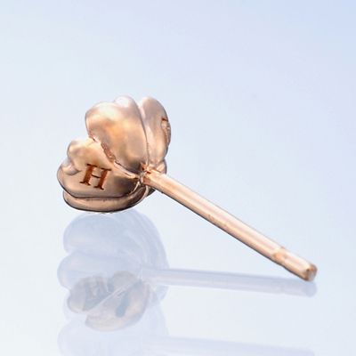 Lip SAKURA 裏面イメージ。(※ 参考画像は同モチーフのピアスにて。その他アイテムの同モチーフはすべて、裏面中央に光穴を空けた仕様になります)。裏面には桜の花弁5枚が重なり合うイメージを表現。モチーフはフラットではなく、ふっくらとした厚みをもたせている。