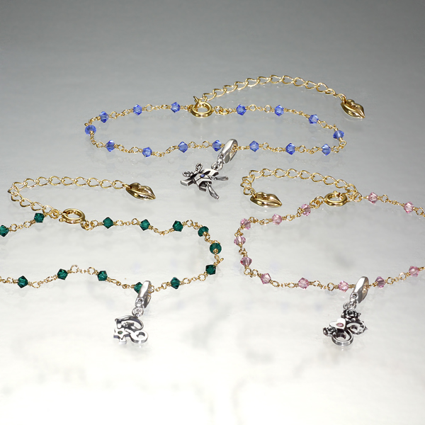 アングルバリエーション。小振りながらも、各モチーフの立体感を好演出。※ チャームを3点セット購入で、お好きなビーズブレスレットをもれなく1本サービス。注文フォームにてご希望のブレスレットを明記して下さい。