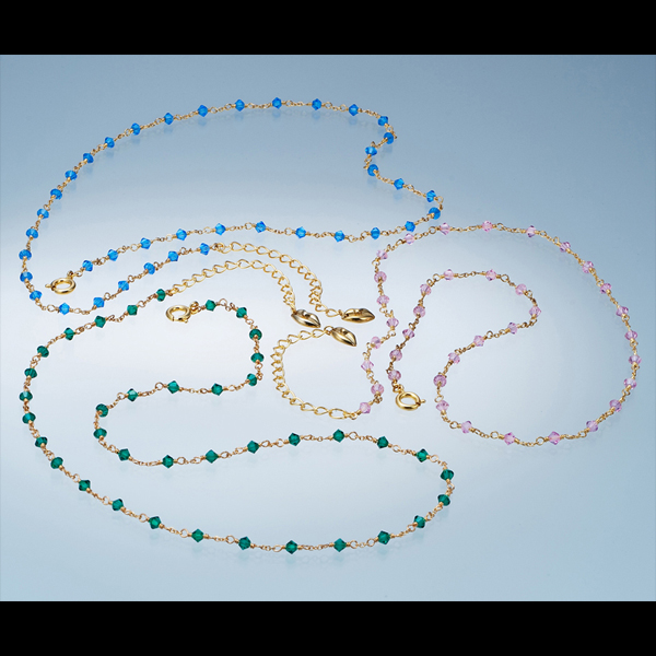 スワロフスキーのカラーバリエーションで3人のキャラクターをイメージしたネックレスレット。 キス(唇)チャームを連結したチェーンに、誰のイニシャルチャーム(別売り)をコーデする? キミは誰とキスをする? ネックレスとしてはもちろん、二重に巻けばアンクレットとしても◎な長さになる2WAYチェーン! ※ ページ下の商品データ内「ビーズの種類」を選択すると、該当アイテムに画像が切り替わります