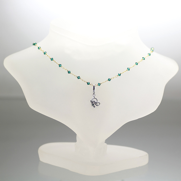 ゴールドFLD(チェーン)・スワロフスキー(エメラルド)・キュアル(キスチャーム)