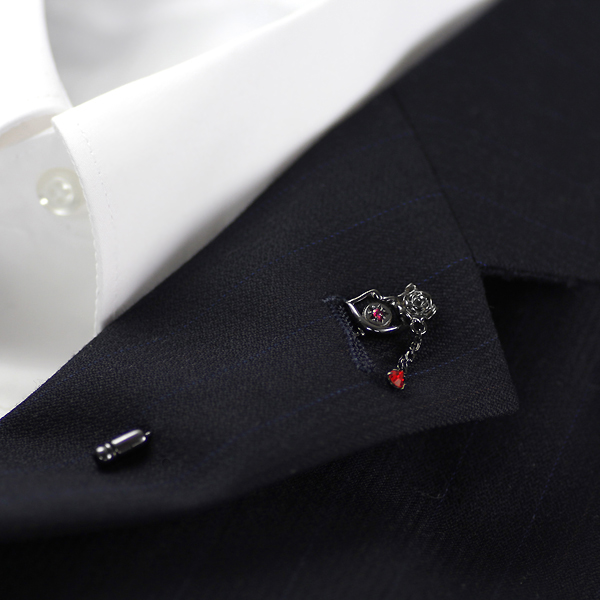 醜い大人になることを拒み、永遠に美しくあることを選んだ少年たち。純粋で暴力的な欲望と狂気に対する「罪と罰」をイメージし、ラペルピンに落とし込んだデザイン。