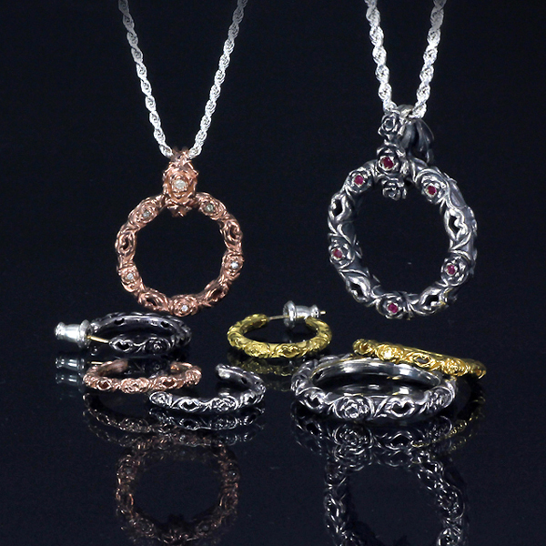 同シリーズ にて、他にリングやピアスも展開。このシリーズの原点モデルは Rosetta Lip バングル