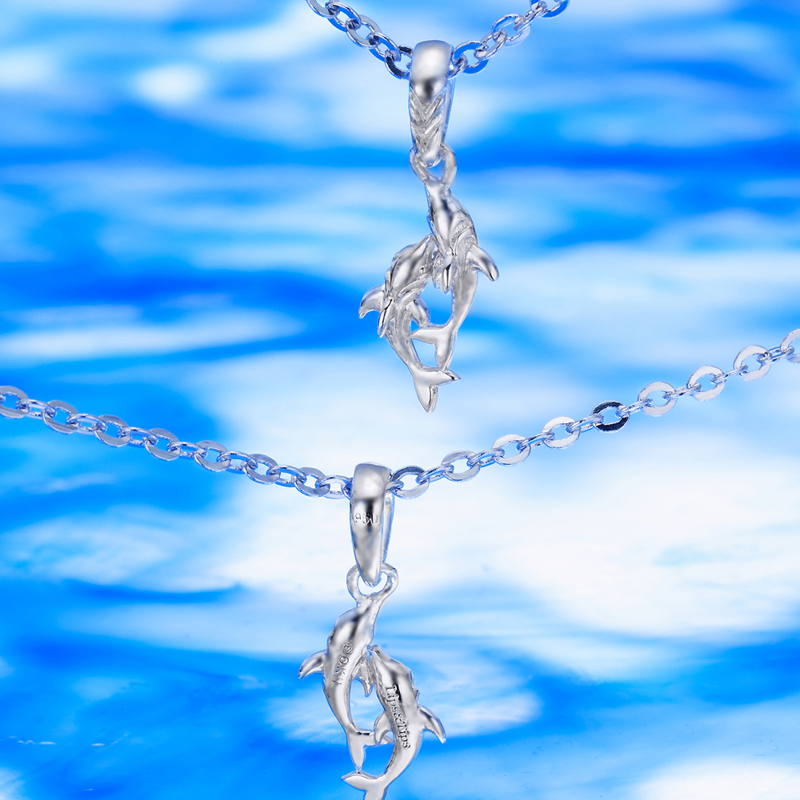 泳ぎを繋ぐ水泳リレー。キャラクター達の強い絆や、ともに泳ぐ姿をコンセプトにしたドルフィンチャーム。まるでバトンを繋ぐようなしぐさで、寄り添いながら躍動する2頭のイルカをデザイン。ハワイでは「幸運を呼ぶ使者」として、恋愛運アップのアイコンとしても重宝されている。普段使いにもオシャレなラッキーチャームに! ※ 画像上はオモテ面、画像下は裏面。※ チャームは1個売りです