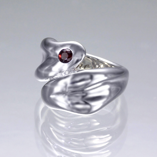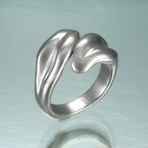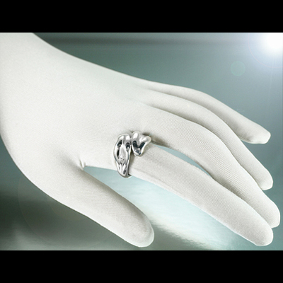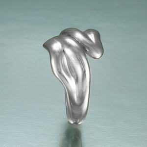 2人の舌先が優しく触れ合う瞬間をイメージしたラブジュエリー。向かって右側のベロ(太)が男性、左側(細)が女性。ベロの太さを気持ちアレンジしてアシンメトリーに。装着するとベロが指にまとわり付いているようなニュアンスに。