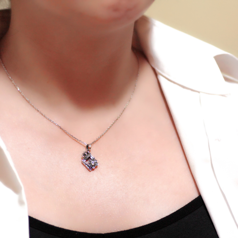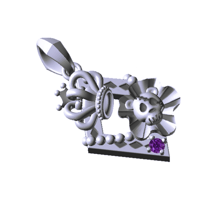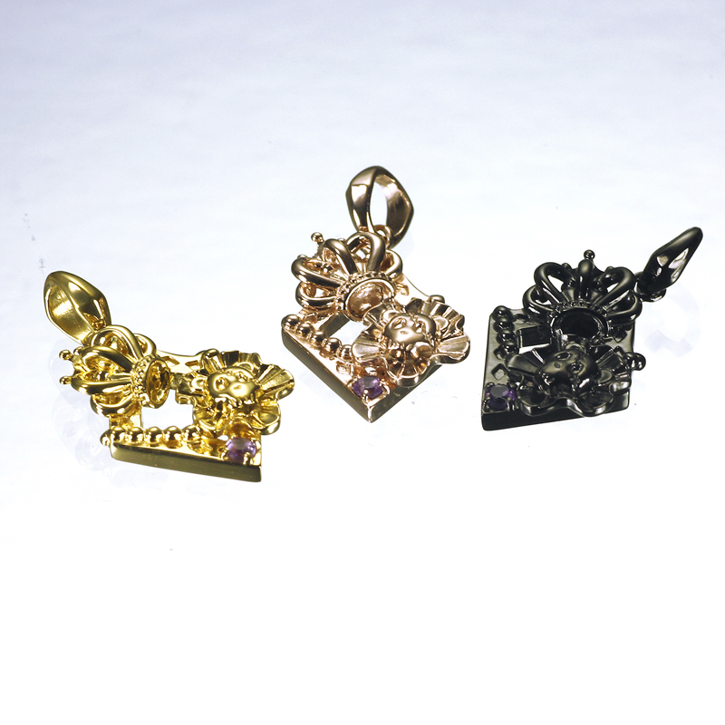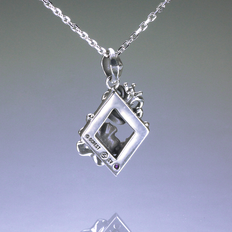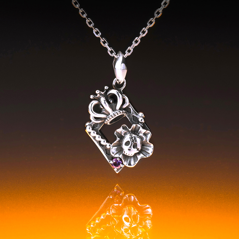 こちらはデザインイラストデータです。トップもバチカン(チェーンを通す部分)もダイヤ型で装飾をプラスし、天然石アメジストがキラめく。宝箱のような華やかさを演出! 天然石は在庫なくなり次第、同系色他種ストーンに変更する場合あり。その際はお知らせ致します。