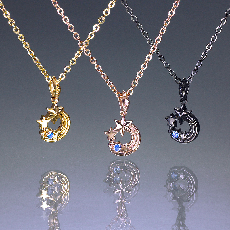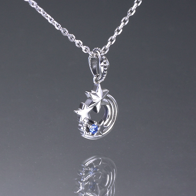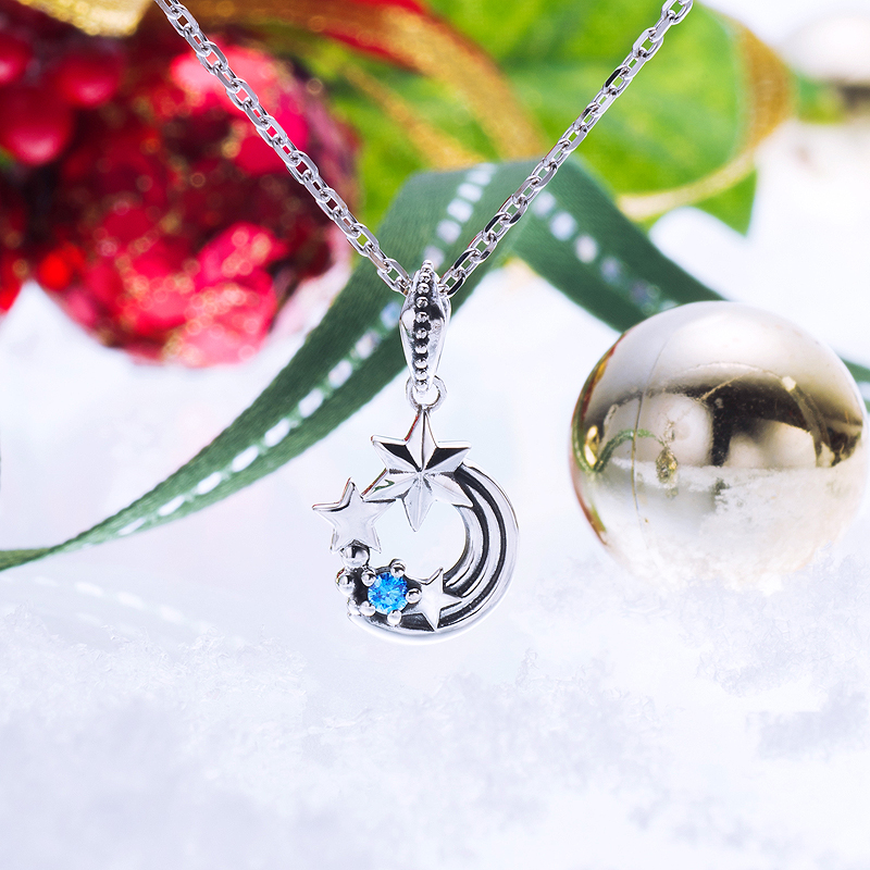 流星の国・メテオベールの王子「シュテル」から姫様へ、クリスマスプレゼントをイメージしたペンダント。星と流星と輝石を散りばめ、煌めく夜空を連想させるロマンティックなデザインに。