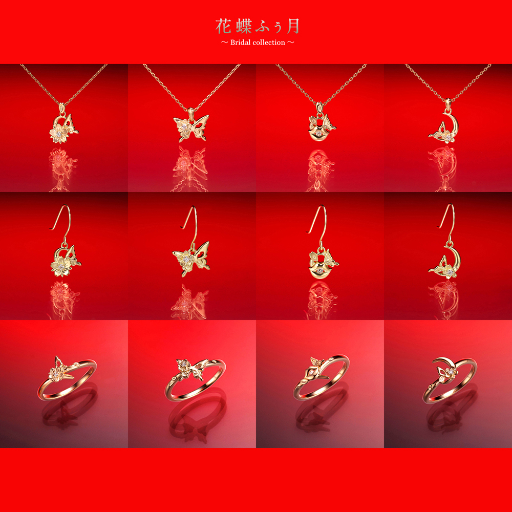 自然界の美しい風景、風雅な趣を楽しむ「花鳥風月」。繊細でたおやかな情緒をリップス流に昇華し表現する、K18・ダイヤモンド仕様のブライダルコレクション『花 “蝶” ふぅ 月』。慌ただしい毎日を送っていると、なかなか感じる余裕のない風雅を、ジュエリーとして身にまとうことで心穏やかに優しい気持ちをもたらすものに ……。そんな願いも込めた心揺らすジュエリー。