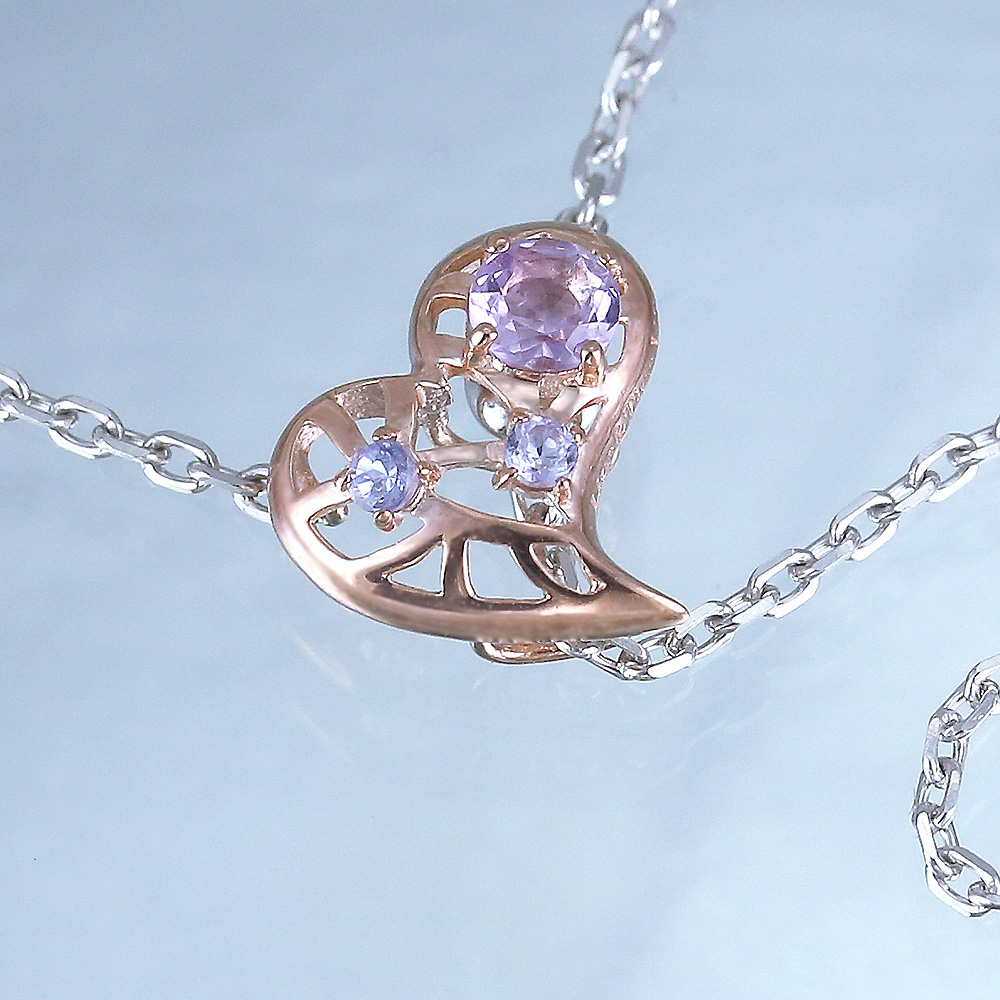 K10リップゴールド・シルバー+ロジウム・アメジスト(4mm)・タンザナイト2石(2mm)