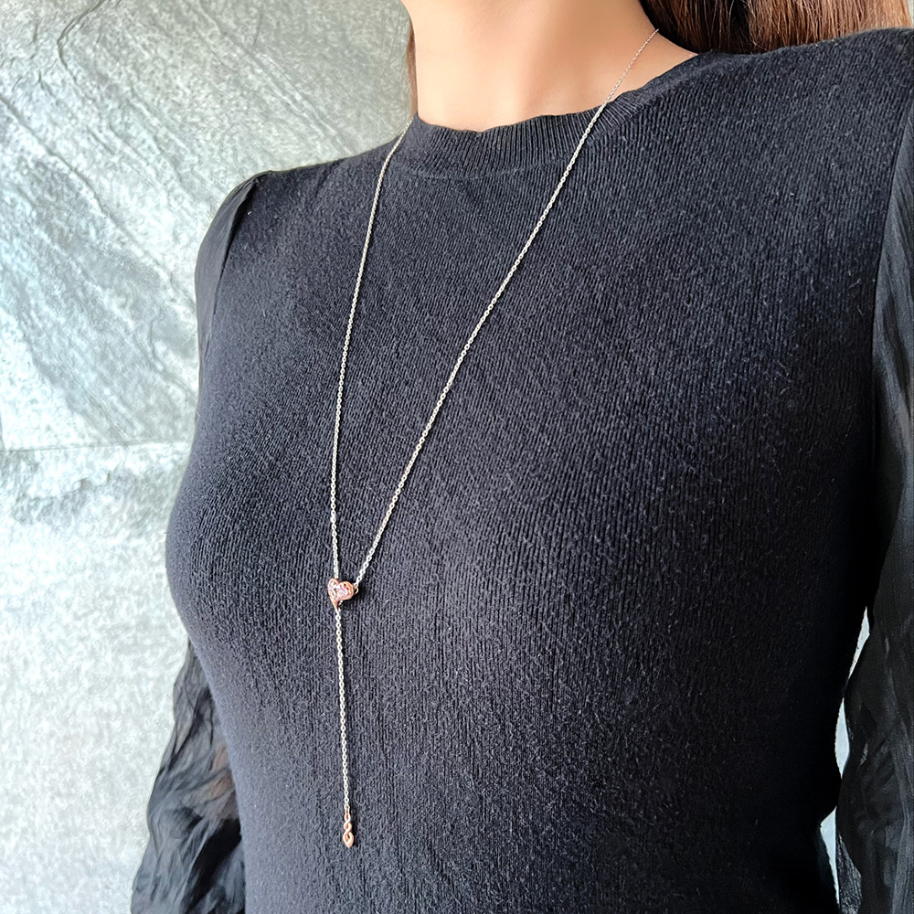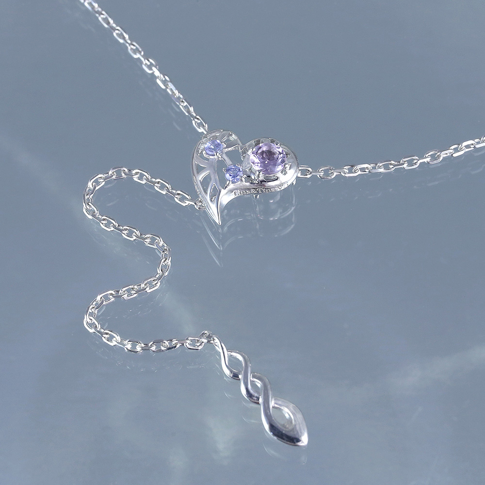 ハートのようにも見える、唇のサイドアングルをY字チェーンの中心に構える。脈をイメージした透かし模様に、アメジスト(いて座の守護石)とタンザナイト(12月の誕生石)2石で華を添える。K10リップゴールドとの相性も◎