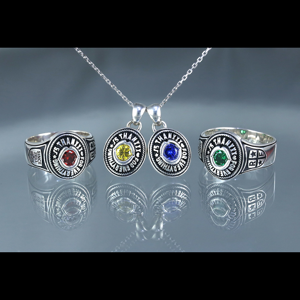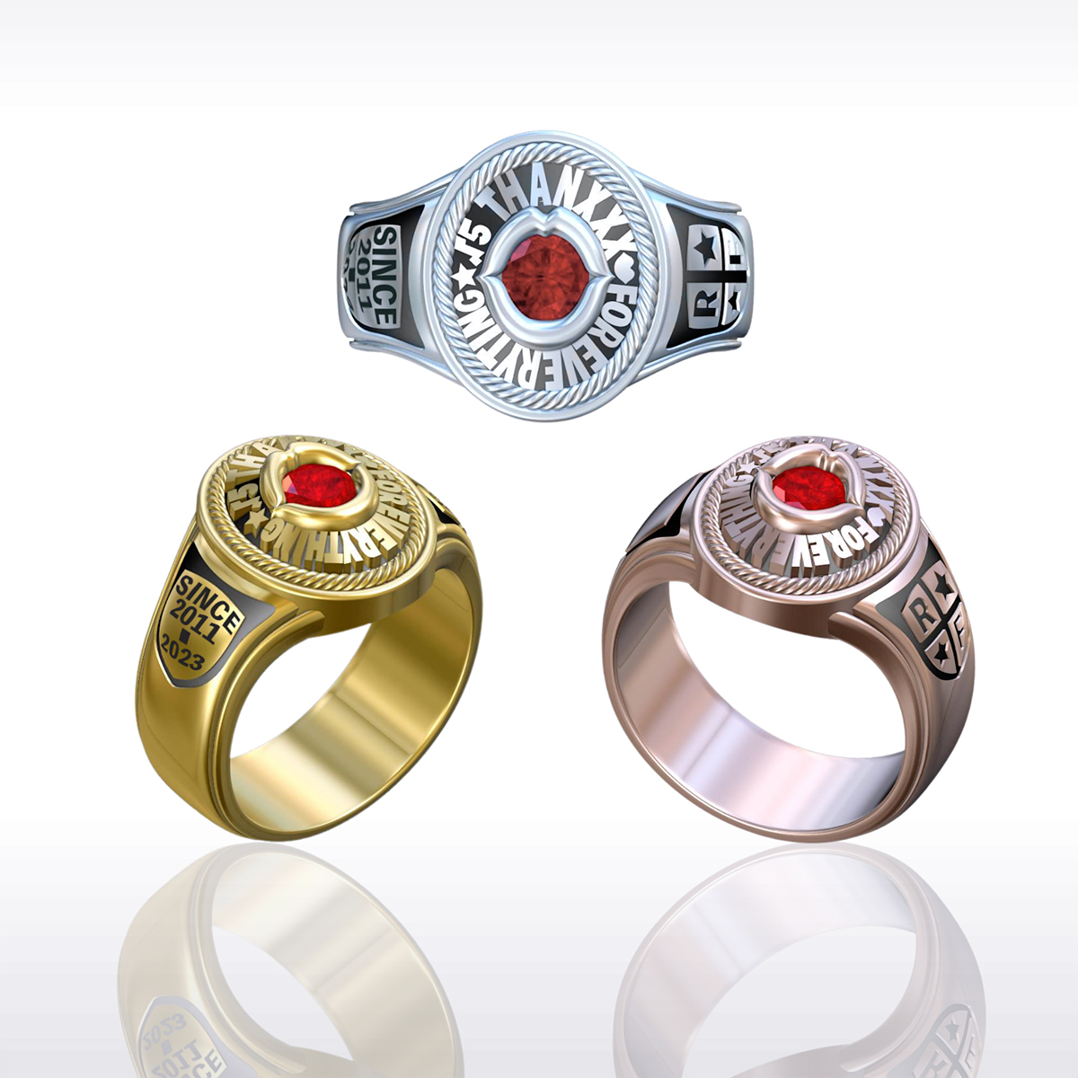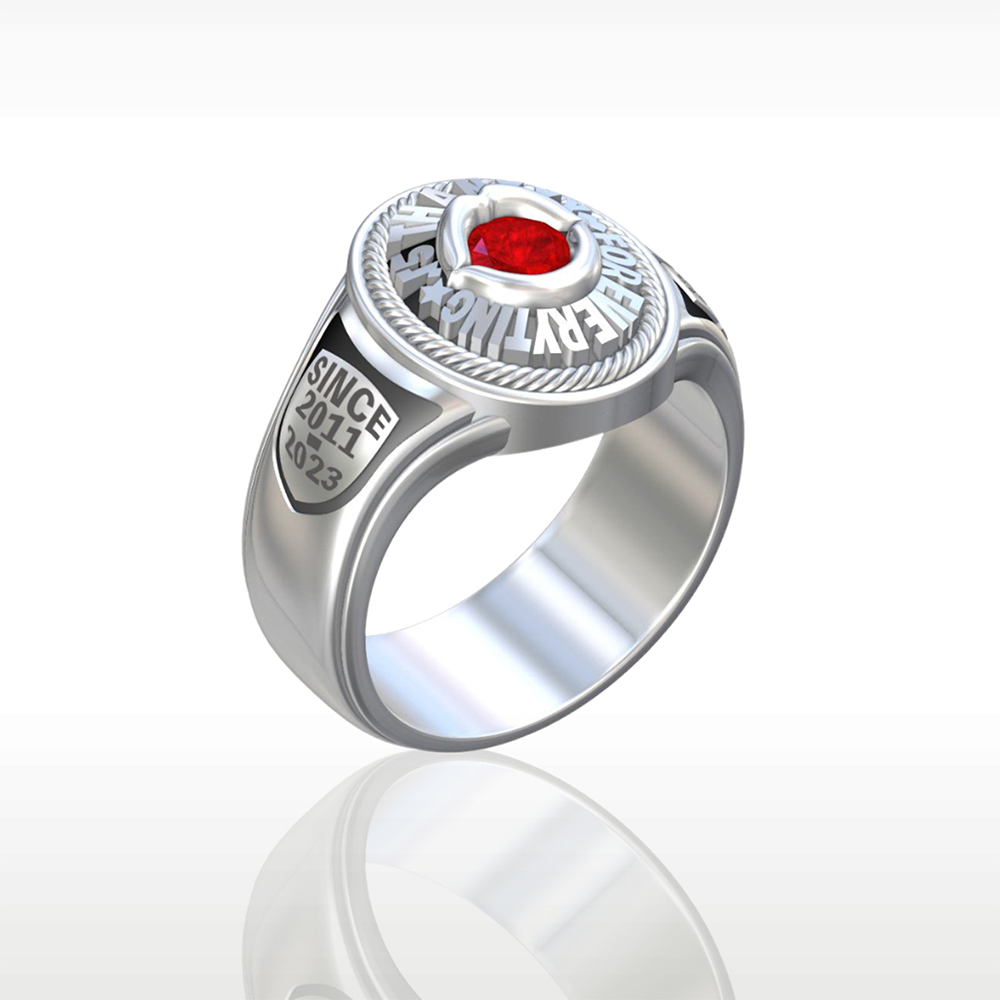 活動期間を刻んだアーム反対面に構える4分割されたシールド(盾)には、「ROOT FIVE」のイニシャルと5角スターを刻む。リングアーム裏面に、レーザー彫刻による ネーム彫りカスタム が可能。自分だけの文字を入れて、より想い入れの深いメモリアルな逸品に。カートに入れてから注文フォームの連絡事項欄に「ご希望の文字」を明記して下さい。