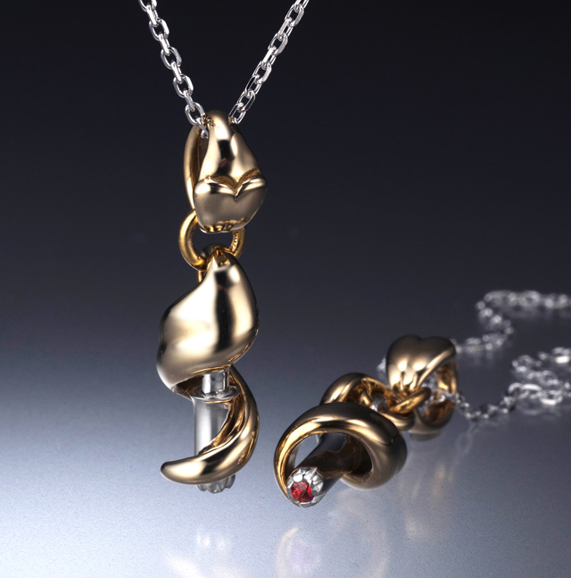 サイドアングルイメージ.1。巻き付くベロのアシンメトリーなプロポーションは、見るアングルによって表情を変える。こちらサイドから見ると、タンポンのディテールがチラリ! シャレの分かるオトナに捧げるラブジュエリー!