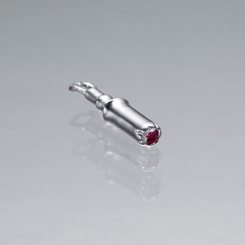 シルバーのタンポンパーツ。神秘で魅惑な経血のイメージを、先端にセットしたルビーの輝きに込める。自己満ラグジュアリーなチラリズム! ※ 豆知識「ルビー」宝石言葉「情熱・愛の疑惑・勇気・美・優雅 etc」7月の誕生石。牡羊座の守護石。ルビーを持つと情熱や深い愛情に恵まれ、愛を取り戻す力があるとも言われる。信念と決意を強め、望むことを実現する力を与えてくれるとか。またルビーを身に着けると魅力や美しさが増し、優雅な身のこなしと気品を強調するとも