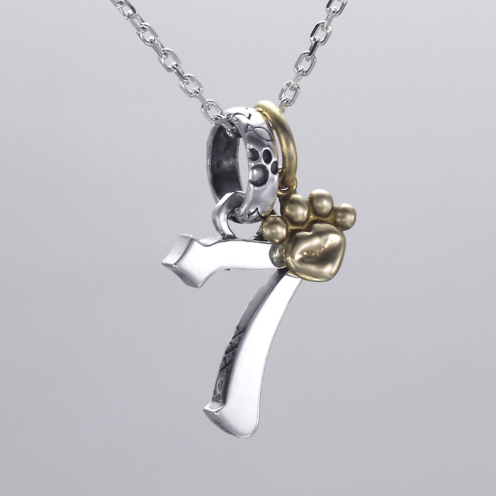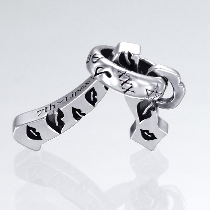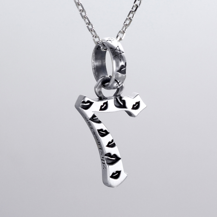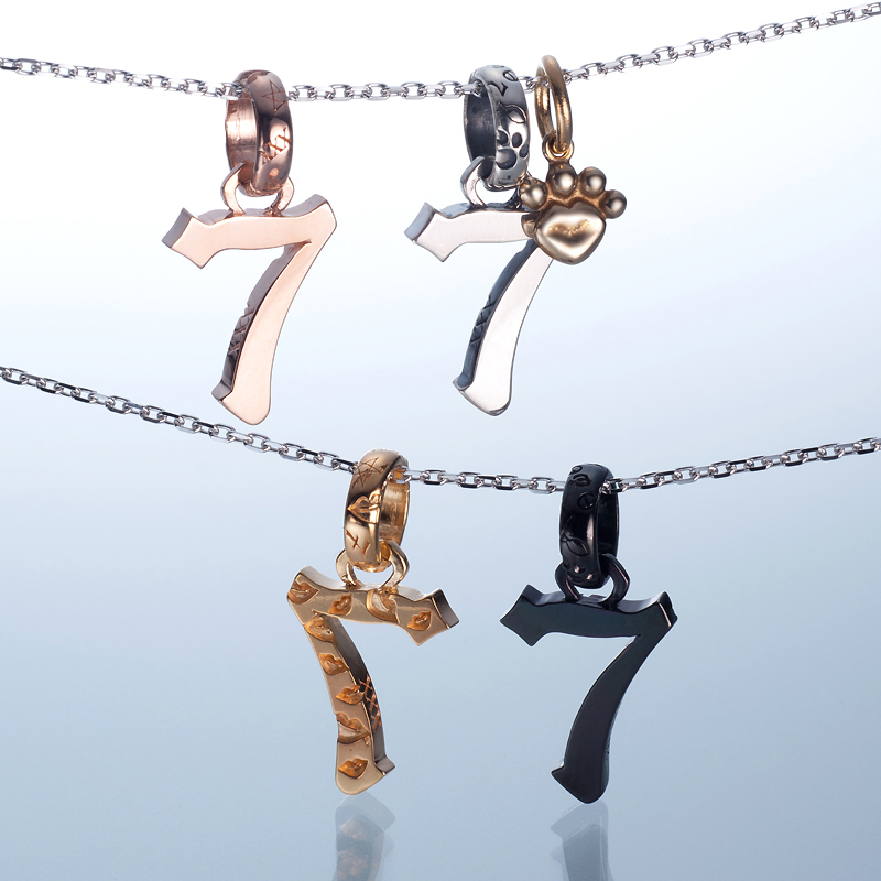 シルバー × イブシ仕上げのスタンダードモデル。鏡面仕上げの「7」に、前シリーズのみちゃグラフィティ バチカンをセットアップ。バチカンには、7、ΘωΘ、肉球、お魚、星、音符、XXX(キス)、唇をイレギュラーにデザイン! ※ 装着サイズイメージは、みーちゃんの装着イメージカットを参照下さい