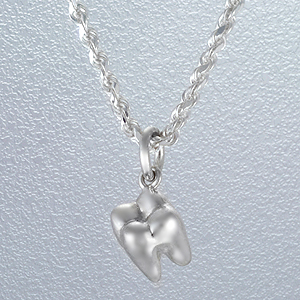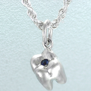 歯の中心にストーンを1石セットし、虫歯治療のニュアンスに仕上げる遊び心◎なカスタム(+3,000円税抜〜)。奥歯が斜めに吊り下がるからストーンも際立つ! こちらは「サファイア」カスタム(+5,000円税抜)※カスタムご希望の場合はカートに入れてから注文フォームに明記して下さい<サービスでシルバーチェーン(40cm+アジャスター5cm)にアップグレードします>