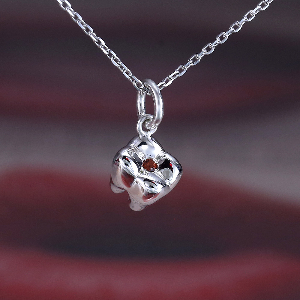 歯の中心にストーンを1石セットし、虫歯治療のニュアンスに仕上げる遊び心◎なカスタム(+3,000円税抜〜)。奥歯が斜めに吊り下がるからストーンも際立つ! こちらは「ルビー」カスタム(+5,000円税抜)※カスタムご希望の場合はカートに入れてから注文フォームに明記して下さい<サービスでシルバーチェーン(40cm+アジャスター5cm)にアップグレードします>