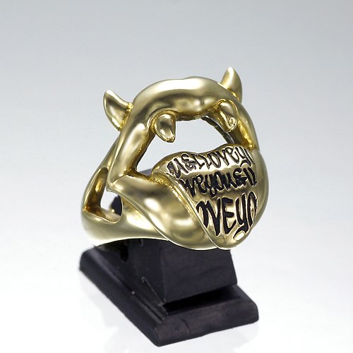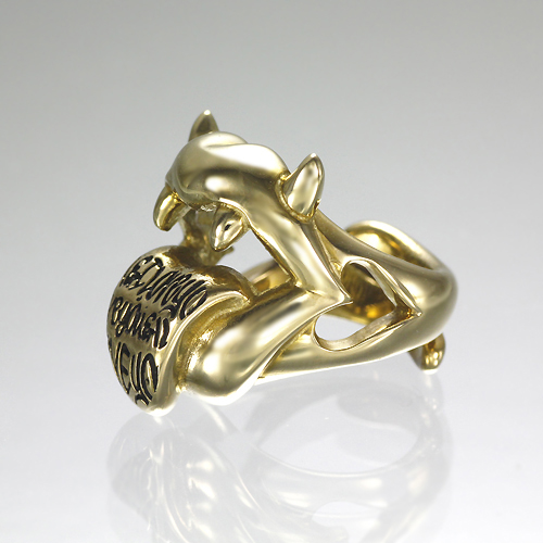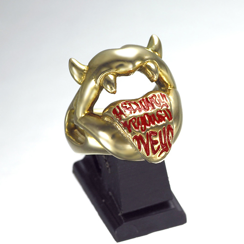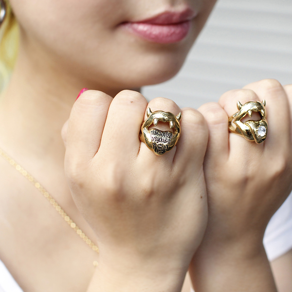悪魔の唇をコミカルにアレンジし、キバとツノを生やした唇がベロを出して挑発! ベロいっぱいに「You & I Love You & I Love……」と、永遠にループするラブメッセージをラクガキ風に彫り込んでいる。ボディ素材は