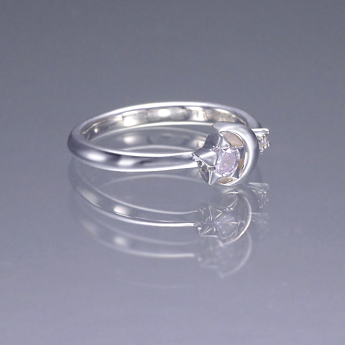 「琉生から貴方への贈り物」をテーマにデザイン。不思議系美容師・琉生からの贈り物は、三日月と星が寄り添った夜空をイメージさせるロマンチックなリング。