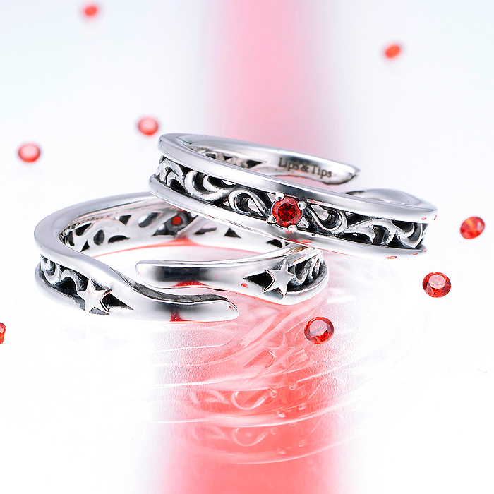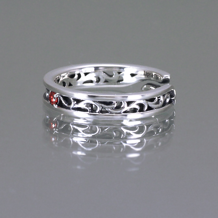 「侑介から貴方への贈り物」をテーマにデザイン。ヤンキー系同級生からの贈り物は、侑介が立ち寄るお店に置いてありそうなアラベスク柄の透かし彫りが硬派&繊細なイメージ。侑介カラーのストーンがイブシ仕上げのシルバーに映える。