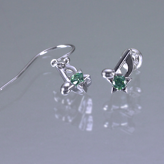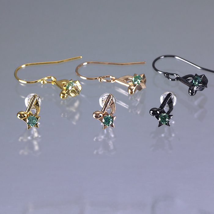 寡黙系サラリーマン・三つ子「棗」からの贈り物は、リング ・ チャーム に続いてピアスが完成。コンセプトはこれまでと同じく、音符と星モチーフを互いに寄り添うようデザイン。こちらは「フック」タイプ。 <ピアスは1個(片耳)売りです。2個以上オーダーの場合は、カートへ入れる前に数量選択して下さい>