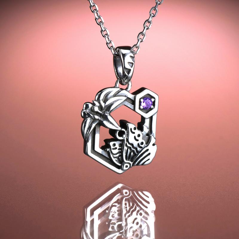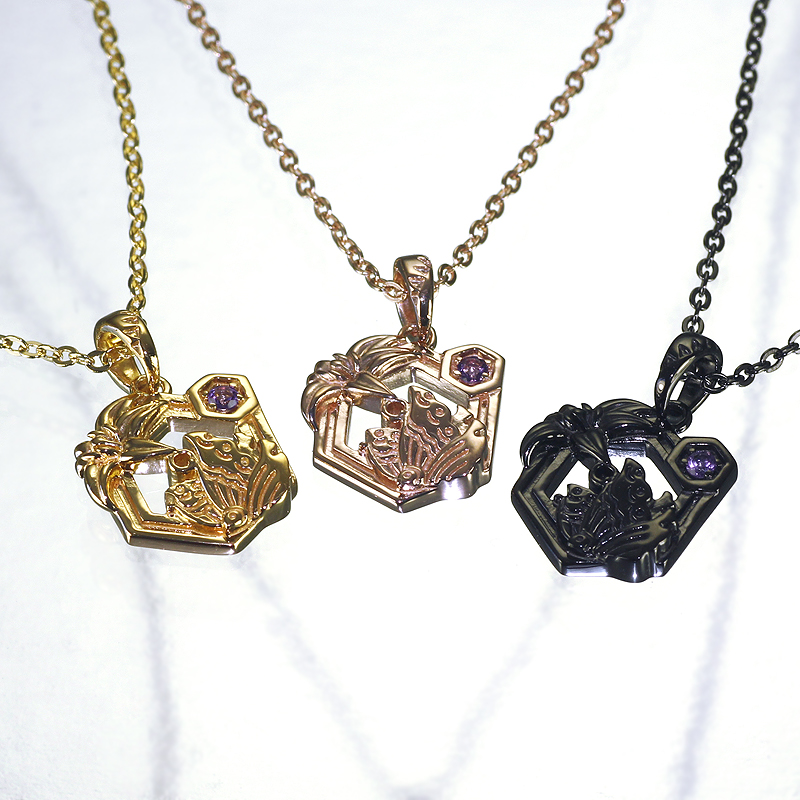 幕の国「芹沢鴨」から貴女へ贈るペンダント。新選組マークに、彼らしい華やかな花とアゲハ蝶をデザイン。バチカン(チェーンを通すパーツ)に 段だら模様をあしらうなど、「和」の雰囲気を漂わせた仕上がり。