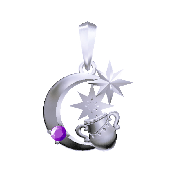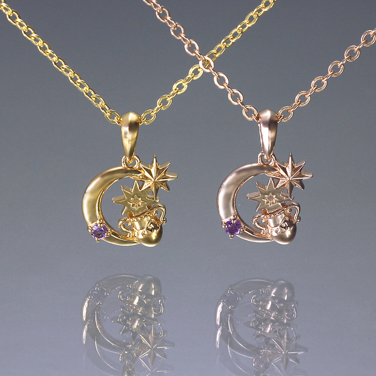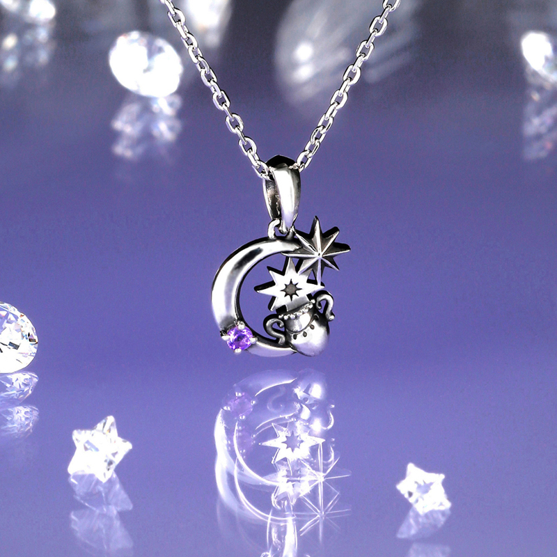 現の国「森鴎外」から巫女様に贈るペンダントは、『天の川に願いを』のイベントスチルをモチーフにしたデザイン。柔らかな水がめレリーフや、イメージカラーの輝石アメジストを添えて。涼し気に胸元を飾ります